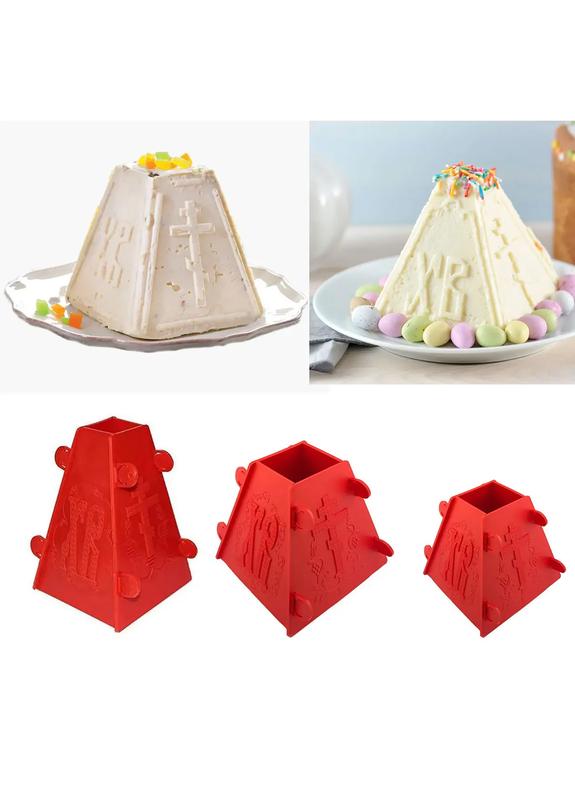 Этот набор – незаменимый помощник при подготовке к большому празднику Пасхова. Он состоит из 3 пластиковых форм. Используя их, Вы сможете приготовить нежную и ароматную сырную паску. Сырная паска - это сыр со сливками или сметаной, спрессованный в виде всечёной пирамиды. Конструкция форм представляет собой разборную модель, стенки которой соединяются с помощью клипса. Изделие легко отсоединяется от готовой паски. Форма рассчитана на многократное использование. К форме прилагается рецепт для приготовления сырной паски. Надежный безопасный пластик обеспечивает прочность форм и их долгий срок использования. Состав набора - 3 формы: малая: 0.3 кг, средняя: 0.5 кг, большая: 1 кг. Как использовать форму для пояски? 1. Собрать форму для пояски из 4 частей и перевернуть ее. Поставить в миску, выслелить марлей так, чтобы свисающие края были примерно ровной основе формы. 2. Выложить приготовленный сыр для пояски в форму, закрыть марлей, поставить пресс (например, тарелку) и убрать в холодильник на 10-12 часов. 3. Расвернуть марлю на основании и перевернуть на плоское блюдо. Пресс снять. Потянув за марлю, аккуратно вынуть пояску на блюдо и украсить. Характеристики большой формы: Общий объем форми: 1 кг Материал: пищевой пластик Наличие ручек: нет Высота: 16.5 см Сторона верхнего "квадрата": 4 см Сторона нижнего "квадрата": 11 см Толщина стенок: 2 мм Характеристики средней формы: Общий объем форми: 0.5 кг Материал: пищевой пластик Наличие ручек: нет Высота: 11.3 см Сторона верхнего "квадрата": 4.8 см Сторона нижнего "квадрата": 11.3 см Толщина стенок: 2 мм Характеристики малой формы: Общий объем форми: 0.3 кг Материал: пищевой пластик Наличие ручек: нет Высота: 10 см Сторона верхнего "квадрата": 3.8 см Сторона нижнего "квадрата": 9.5 см Толщина стенок: 2 мм