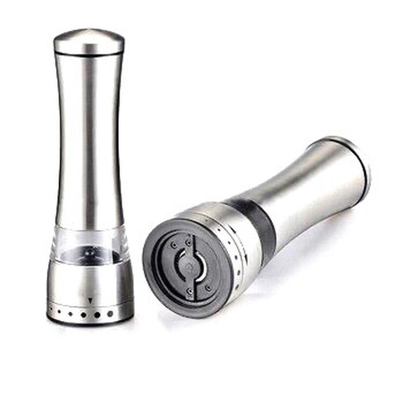 Млин для спецій Benson відмінно підходить для додавання до страв свіжомеленої солі або перцю, подрібненого перцю чилі, сушеного чебрецю та розмарину тощо. Переверніть млин догори дном і почніть крутити головку виробу за або проти годинникової стрілки, потім поверніть у вихідний стан. Якісний спецівник - подрібнювач зі спеціальним механізмом для солі та перцю. Подрібнювач для солі та перцю з механізмом простий у використанні та відрізняється стильним дизайном. При прокручуванні ви можете посипати подрібненим перцем або сіллю будь-яку страву. Колір: сріблястий Матеріал: нержавіюча сталь Висота 22 см.