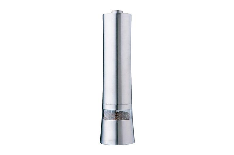 Електричний подрібнювач для солі та перцю Maestro — допоможе швидко додати до страви сіль, перець або будь-які інші прянощі. Виготовлено з неіржавкої сталі та металу, які гарантовано слугуватимуть довгі роки. Механізм електричний і зручний. Елегантний дизайн впишеться в сучасний інтер'єр кухні або святкове сервірування столу. Невелика частина виготовлена зі скла, тому видно, що всередині.