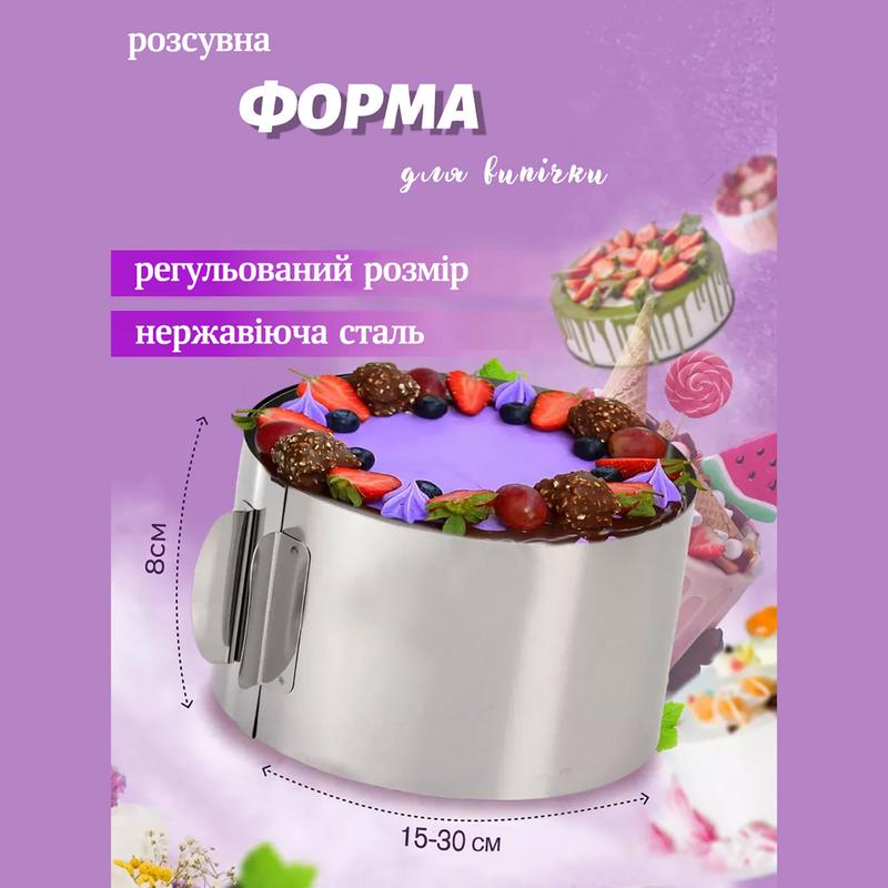Розсувна кругла форма для випікання тортів та бісквітів та формування салатів та тортів 15...