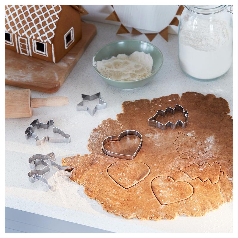 ІКЕА Форми для тіста 5 шт з нержавіючої сталі У комплекті 5 формочок для торта: серце, ялинка, Санта Клаус, зірка та різдвяна коза. Різноманітність форм і розмірів для всього. Від декорування марципаном до вирізання тортів. Використовуйте свій творчий потенціал і перетворіть випічку на радісне хобі, прикрашаючи печиво глазур'ю та цукерками. Дизайнер: Єва Лундгрін Ширина: 15 см Висота: 2 см Довжина: 18 см Вага: 0.1 кг Можна мити в посудомийній машині. нержавіюча сталь