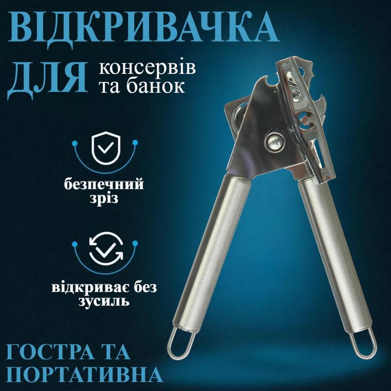 Консервний ніж A-PLUS (1072) Компактний консервний ніж A-PLUS ідеально підходить для швидкого та легкого відкривання консервів. Для того, щоб уникнути невдач на кухні, ніж розроблений з ергономічним нековзним покриттям ручки, для безпечного та комфортного використання, навіть якщо вона мокра! Лезо досить гострі, щоб відкривати великі банки з горошком, кукурудзиною, бобами, перцем, ананасами й багатьма іншими продуктами, а також пляшки різних розмірів. І після використання спокійно відправити її в посудомийну машину.коли у Вас не буде жодних незручностей під час відкривання бляшаних банок, а стильний дизайн консервного ножа неодмінно впишеться в інтер'єр Вашої кухні. Характеристики: Консервний ніж A-PLUS (1072) - Тип: консервний ніж; - Гострий і портативний; - Нековзне покриття ручок; - Матеріал: нержавіюча сталь; - Можна мити в посудомийній машині; - Колір: сталевий. Комплектація Консервний ніж A-PLUS (1072) - Консервний ніж — 1 шт.; - Паковання.