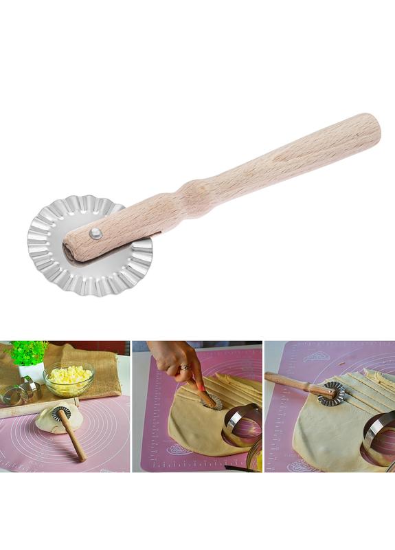 Представляємо вашій увазі фігурний ніж для тіста з ергономічною дерев'яною ручкою. Цей ніж спеціально розроблений для творчих пекарів та кулінарів, які бажають надати своїм виробам унікальної форми та оформлення. Він ідеально підходить для створення різних фігур з тіста, включаючи квіти, зірки, серця та багато інших. Ключові особливості: 1. Гостре та міцне лезо: Ефективно та акуратно вирізує бажані форми, забезпечуючи чисті та точні контури. 2. Дерев'яна ручка: Пропонує комфортне та надійне захоплення, дозволяючи точно контролювати кожен розріз. 3. Універсальність: Ідеально підходить для прикраси пирогів, печива, тістечок та інших десертів, додаючи в них оригінальність та творчий підхід. 4. Довжина: 17 см, що забезпечує зручність та легкість у використанні. 5. Творчий Підхід: Цей інструмент відкриває нові можливості для вираження вашої кулінарної майстерності та додавання персонального штриха до ваших страв. Фігурний ніж для тесту з дерев'яною ручкою - це не тільки функціональний інструмент, але і відмінний помічник для втілення ваших найсміливіших і творчих ідей у випічці. Створюйте прикраси для ваших кулінарних виробів з легкістю та задоволенням. Характеристики Матеріал леза: нержавіюча сталь Матеріал рукоятки: дерево Діаметр різального колеса: 5 см Загальна довжина: 17 см Загальна ширина: 5 см. Вага: 34 г Миття в посудомийній машині: так Країна-виробник товару: Україна
