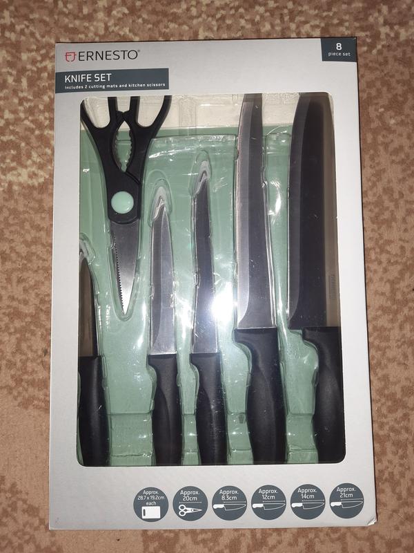 В наявності новий набір ножів з дощечками В комплекті 5 ножів, ножиці, 2 дощечки Ціна 500 В наявності 2 набори