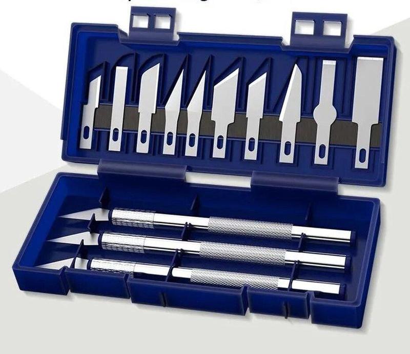 Набор ножей скальпелей 13pc precision knife set, lite Набор ножей скальпелей 13pc precision knife set ― представляет собой 3 рукоятки под лезвия и набор из 13-ти разных видов лезвий и все это в поставляется в пластиковом кейсе, благодаря которому будет удобно транспортировать набор или хранить дома не теряя лезвия