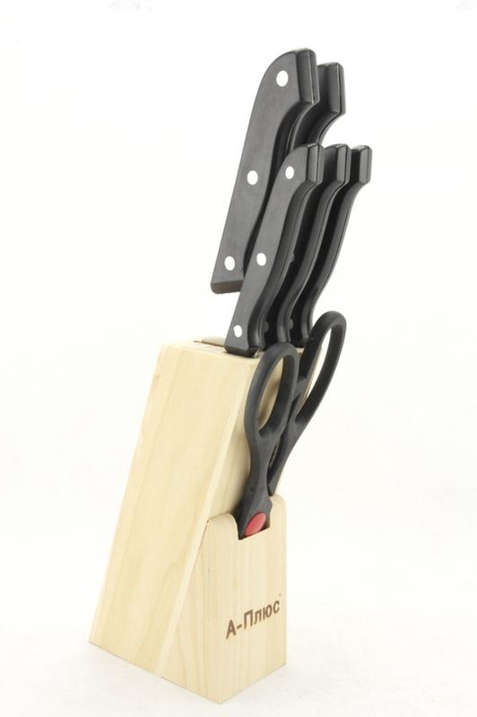 Кухонний ніж потрібний в кожному будинку. Навіть якщо Ви не готуєте самі, то нарізувати і почистити продукти без ножа неможливо. Пропонуємо набір ножів, який зробить процес приготування їжі набагато легше і приємніше. Придбаваючи його, Ви отримуєте ножі різного розміру, але виготовлені в одному стилі. Купувати ножі в наборі завжди дешевше, ніж окремо. У комплект входить підставка з дерева, в якій зберігати ножі зручно і безпечно. Набір ножів (7 предметів) з пластиковими ручками чорного кольору : ніж для шаткування 16,5 см; ніж для хліба 20 см; ніж кухарський 20 см; ніж універсальний 12,5 см; ніж для чищення 9 см; ніж для чищення овочевого ножиці Пропонуємо співпрацю для власників магазинів. Ножі кухонні, посуд і інші товари для будинку оптом від виробника за найнижчою ціною. Доставка по Україні усіма доступними у Вашому регіоні службами.