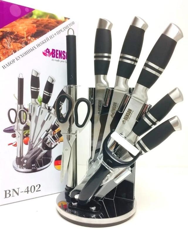 Набір кухонних ножів на підставці benson bn-402 з 9 предметів.