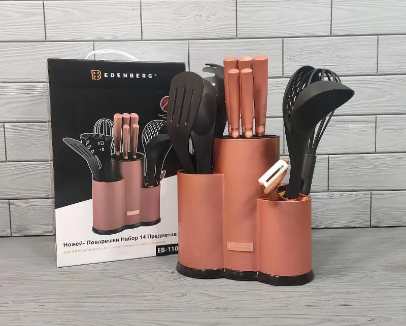 Набір ножів та кухонного приладдя edenberg eb-11099-bronze 14 предметів бронзовий