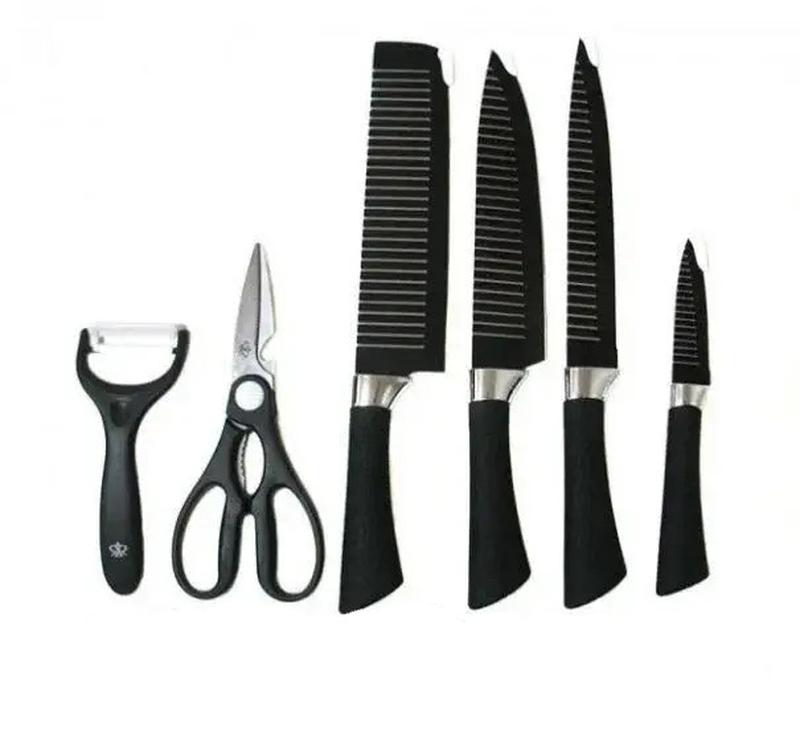 Ножі Zepter, завдяки своїй практичності та досконалій формі, припадуть до душі та професійним кухарям, і будь-якій домогосподарці, що цінує якість, надійність та довговічність. У набір входять: - ніж для чищення овочів, - Ніж для нарізки, - ніж кухарський, - Ніж для хліба, - ножиці, - Овочечистка.