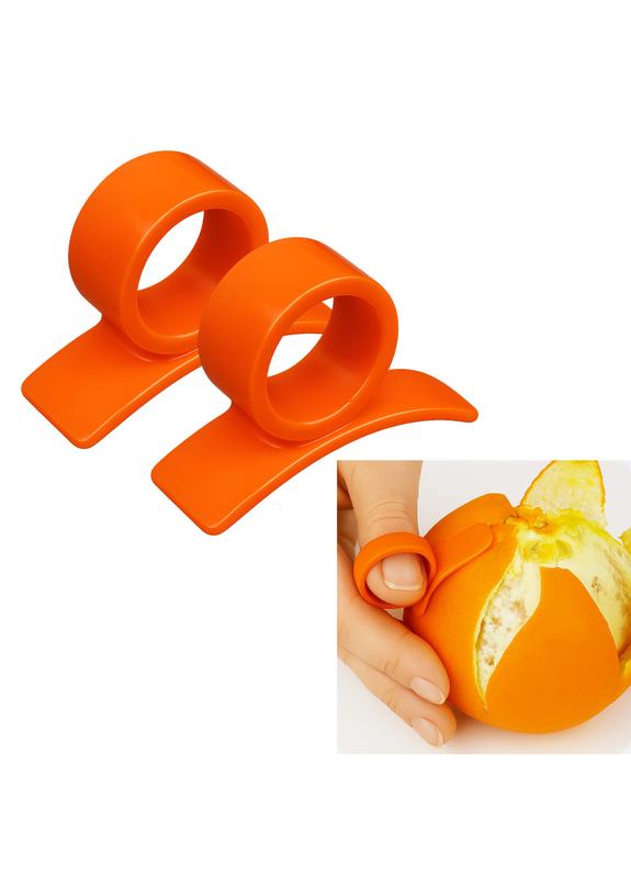 Практичные и удобные ножи для быстрого очищения апельсинов, мандаринов, лимонов и других цитрусовых фруктов. Использование предельно просто: проденьте большой палец в специальное колечко ножа и сделайте несколько легких надрезов на кожуре. Пластиковое лезвие аккуратно надрезает кожицу, не повреждая плод. После этого кожуру легко снять — как с мандарина! Как использовать: Просто просуньте большой палец в удобное колечко ножа (внутренний диаметр — 18 мм, внешний — 25 мм), и с помощью выступающей части аккуратно надрежьте кожуру. Маленький размер ножа не позволяет проникнуть глубоко, сохраняя плод целым и сочным. Сделайте несколько надрезов — и кожура легко снимается, как с мандарина. Преимущества: Простота в использовании — несколько движений, и фрукт очищен. Быстрота — за пару минут можно очистить несколько апельсинов. Универсальность — подходит для любых цитрусовых. Легкий уход — достаточно просто промыть под водой. Безопасность — пластиковое лезвие не нанесет травм. Компактный размер — не занимает много места. Удобен для всей семьи — подходит для любого возраста. Характеристики: Внутренний диаметр кольца: 18 мм Внешний диаметр кольца: 25 мм Длина ножа: 4,5 см Ширина: 10 мм Вес: 5 г В наборе: 2 штуки Материал: пластик Страна производства: Украина С этим набором очистка цитрусовых станет быстрой, лёгкой и безопасной!
