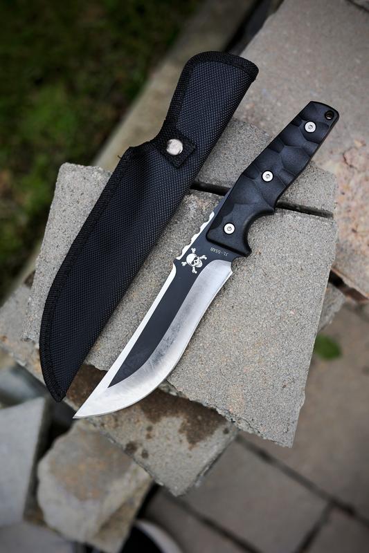 Мисливський ніж з чохлом в комплекті загальна довжина 270 мм довжина леза 150 мм товщина леза 5 мм матеріал леза нержавіюча сталь 65Х13 матеріал рукоятки рельєфний протиударний пластик матеріал чохла нейлон можливість кріплення на пояс