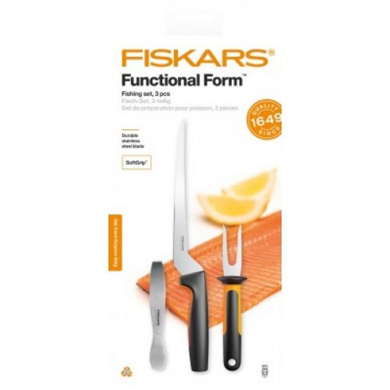 Набір Кухонних Ножів для риби 3 предмета Fiskars "Functional Form" (1057560) Для поваров, которые ценят продуманные и простые в уходе кухонные инструменты, рыболовный набор Fiskars Functional Form ™ включает три инструмента для приготовления, нарезки, филе и сервировки любого вида рыбы. Каждый инструмент разработан для функциональности, комфорта и простоты. Используйте филеточный нож для точной разделки рыбы и рыбный шип для приготовления и подачи рыбы. Пинцет Fish позволяет легко удалить с рыбы все кости. Нож оснащен прочным лезвием из японской нержавеющей стали и эргономичной рукояткой с SoftGrip ™ на кончиках ваших пальцев, а также глубоким защитным кожухом для пальцев, обеспечивающим удобную и безопасную посадку в руке. Как и все ножи Functional Form ™, эти ножи можно мыть в посудомоечной машине для простой повседневной очистки. Разработано в Финляндии. В комплекте идет 3 предмета! Преимущества: - Рыболовный набор Fiskars Functional Form ™ включает в себя нож для филетирования, шип для рыбы и пинцет для рыбы. - Нож для филетирования имеет прочное лезвие из японской нержавеющей стали. - Эргономичная рукоятка ножа имеет SoftGrip ™ на кончиках пальцев и глубокую защиту для пальцев для удобного и безопасного удержания. - Рекомендуется заточка с помощью Fiskars Roll-Sharp ™. - Можно мыть в посудомоечной машине - HRC 52 - Производительность резки (тестирование CATRA) Габаритные размеры в упаковке: - Высота - 370 мм - Ширина - 180 мм - Глубина - 40 мм - Вес - 300 грамм Важно! Продукция Fiskars является оригинальной! Страна производитель - Китай ,Страна регистрации бренда - Финляндия