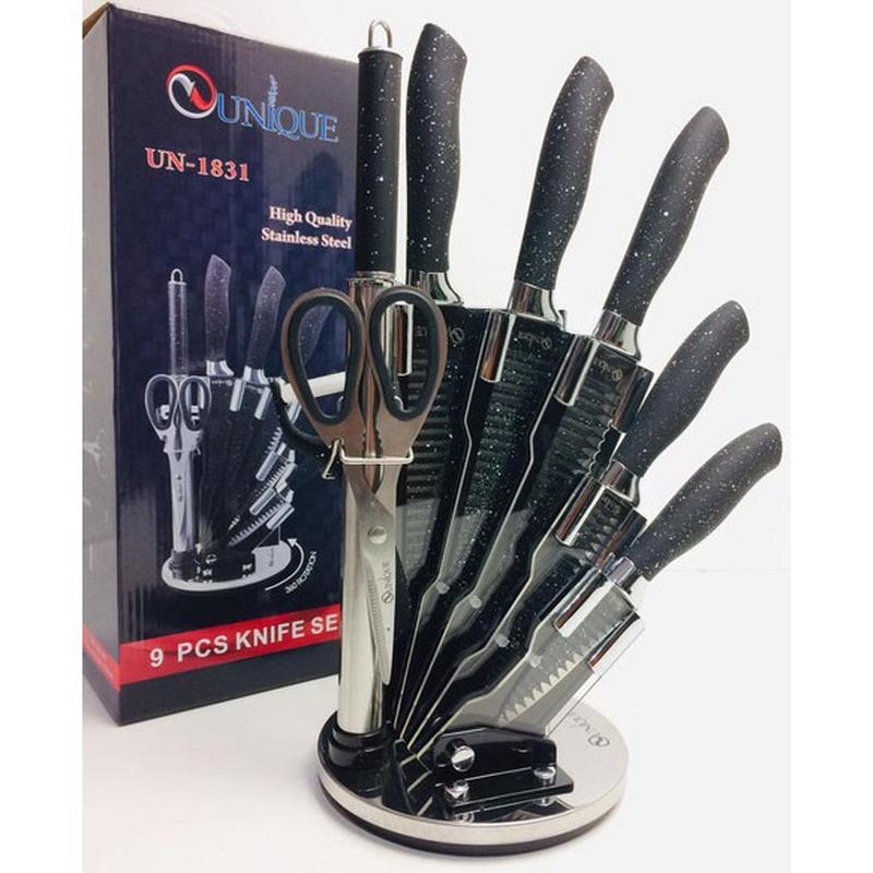 Набір ножів unique un-1831, 9 предметів, з підставкою, нержавіюча сталь, з овочечисткою, ч...