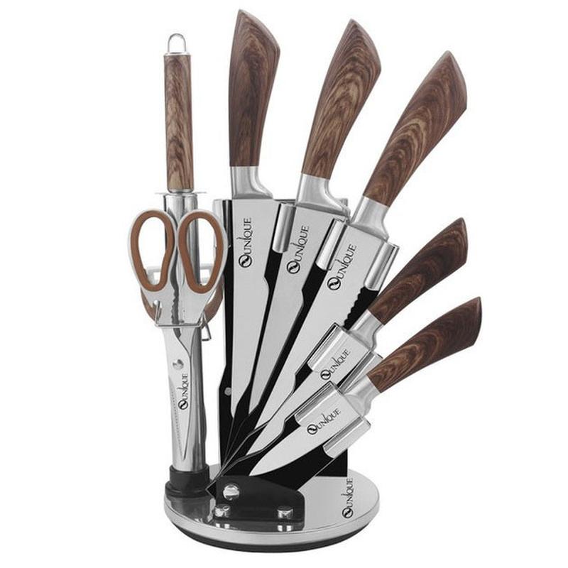 Набір кухонних ножів unique un-1833 з дерев'яними ручками та підставкою