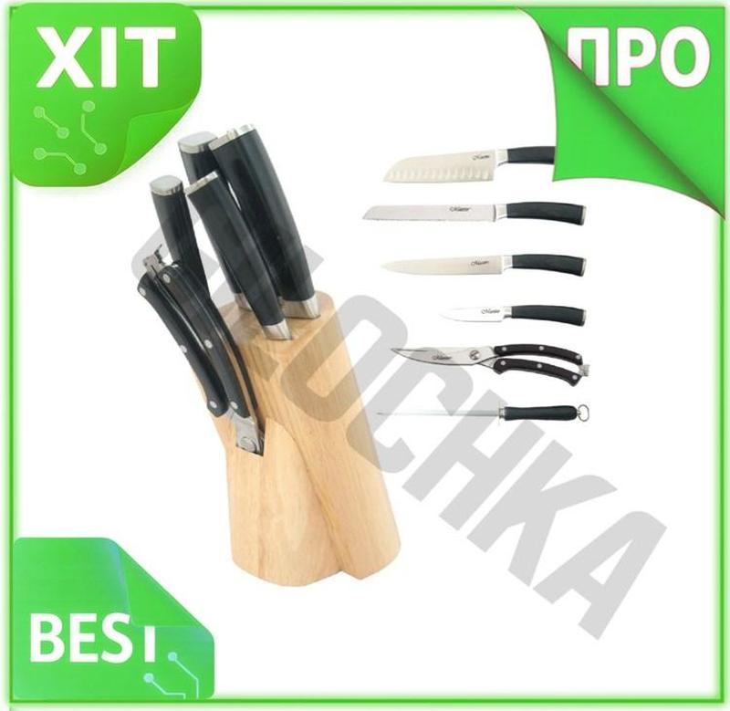## VE Набір ножів Maestro 7 New Version од з нержавіючої сталі для кухні шеф-ножі та кухонне приладдя N6W_VER Набір ножів Maestro MR 1424 складається із 7 предметів. Клинки виготовлені з нержавіючої сталі, дуже гострі та довго зберігають заточування. Відмінною особливістю набору Маестро МР 1424 є матеріал ручок. Рукоятки виготовлені з високоякісного пластику, мають дизайн "під дерево" із чорно-коричневим малюнком. Назва Од.Вим. Значення ВиробникMaestro Країна виробникаКитай Матеріал лезаНержавіюча сталь Матеріал рукояткиПластик Кількість предметів у наборі7 ПідставкаТак ТипЯпонський шеф-ніж (Сантоку) Не пропустіть вигоду! Кількість акційних товарів суворо обмежена! Попередження: на ринку працюють м'яко кажечи не сильно чесні люди, пропонуючи дешеву низькоякісну продукцію під виглядом справжнього товару!Будьте пильними. Ми гарантуємо вам придбання виключно добротного товару в Україні, який бездоганно виконує свої функції та приносить лише позитивні емоції від використання. Чому вигідно купувати саме у нас? Справжні відгуки та рекомендації від задоволених клієнтів Наш інтернет-магазин по праву гордиться великою кількістю позитивних відгуків від вдячних клієнтів. Ознайомтесь з їхніми думками та порадами прямо на цій сторінці або на нашому офіційному сайті, щоб остаточно переконатися у правильності вашого рішення. Максимальна відкритість і чесність у кожному аспекті Ми будуємо міцні відносини з покупцями на засадах порядності та відкритості, завжди готові до діалогу та пошуку компромісів. Всі ключові характеристики продукції, гарантійні зобов'язання та умови обміну детально представлені на нашому веб-сайті, що забезпечує повну довіру та взаєморозуміння. Проста та зручна процедура повернення без зайвих зусиль Ми прекрасно розуміємо, що іноді трапляється, що обраний товар з якихось причин не підійшов. Саме тому наша система повернення є максимально прозорою та клієнтоорієнтованою, щоб ви відчували себе захищено та спокійно після здійснення покупки. Обслуговування преміум-класу, підкріплене 10-річним досвідом Наші досвідчені фахівці завжди готові надати вичерпну консультацію та професійну допомогу у виборі оптимального товару. Ми цінуємо кожного покупця та докладаємо максимум зусиль, щоб процес вашої покупки був максимально комфортним та вигідним. Швидкісна доставка та гнучкі умови оплати на вибір Ми гарантуємо блискавичну доставку по всій території України, а також пропонуємо різноманітні варіанти оплати, включаючи безпечні онлайн-платежі та зручну оплату при отриманні. Оберіть той спосіб, який є найбільш зручним саме для вас. ✅ Абсолютно кожна товарна одиниця ретельно перевіряється на наявність будь- яких дефектів перед відправкою ✅ Свіжі відгуки від наших вдячних покупців Поспішайте! Залишилося всього 3 акційних позиції! ✅ Зі щирою повагою та турботою про кожного клієнта ✅ ДОСТАВКА ОХОПЛЮЄ ВСЮ УКРАЇНУ: Ми з особливою ретельністю пакуємо кожне відправлення, щоб Ваші замовлення були доставлені в цілковитій безпеці. Проте, наполегливо рекомендуємо здійснювати огляд посилки на предмет можливих пошкоджень безпосередньо у відділенні поштової служби, і в разі виявлення будь-яких дефектів – невідкладно складати відповідний акт у присутності працівника служби доставки. Зверніть увагу, що без оформленого акту про пошкодження, роз