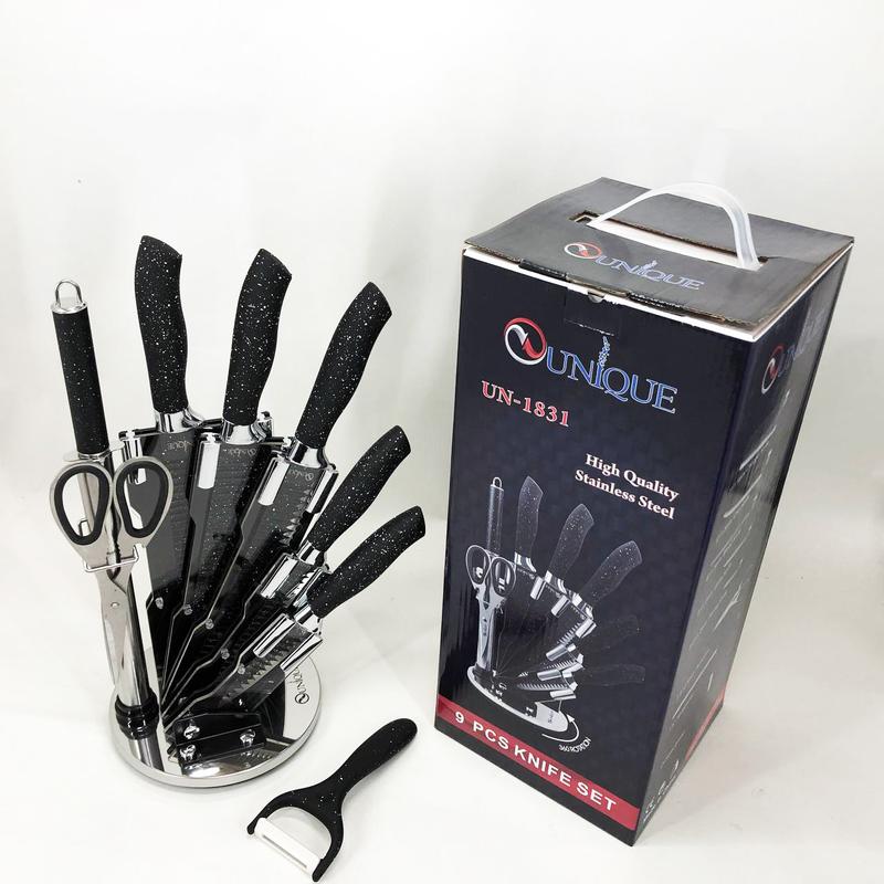 Набір ножів зі стильним дизайном unique un-1831 9 шт., комплект гострих ножів для кухні mq...