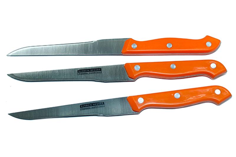 Ножи кухонные (набор из 3 шт) с оранжевой рукоятью
