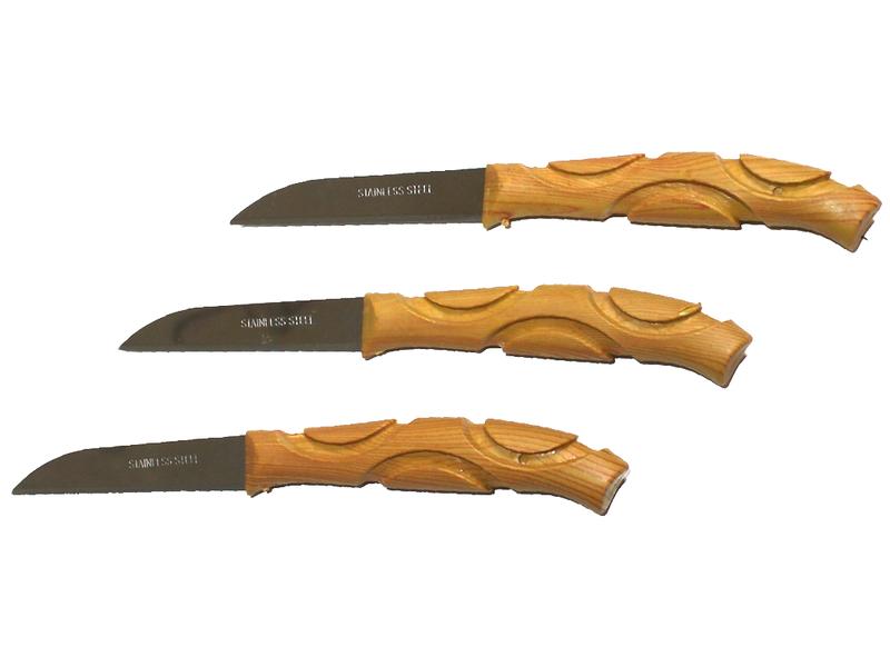 Ціна вказана за 1 упаковку. Виробництво - Китай. Замовлення можна здійснювати від 1 упаковки. В 1 упаковці 12 ножів Довжина 15.5 см Довжина леза 6.5 см Матеріал нержавіюча сталь, дерево.