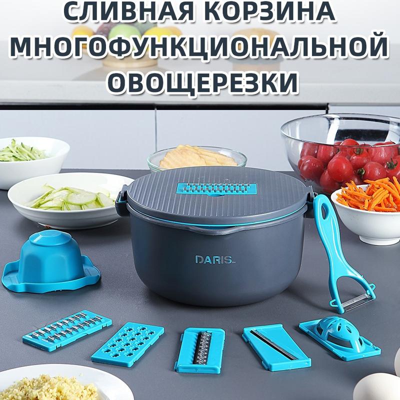 Овочерізка ручна 8в1 daris , овочерізка з друшляком-контейнером, подрібнювач