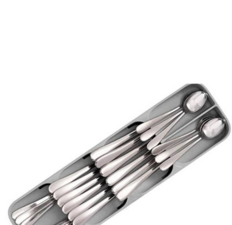 Органайзер містить 4 різні відділення для різних видів столових приладів. Цей компактний органайзер - ідеальне рішення для тих, кому не вистачає місця в кухонній ящику - він звільняє місце для іншого приладдя та кухонних аксесуарів. Матеріал: харчовий пластик. Розмір: 39,8*11,4*5,8 см. Колір: сірий.