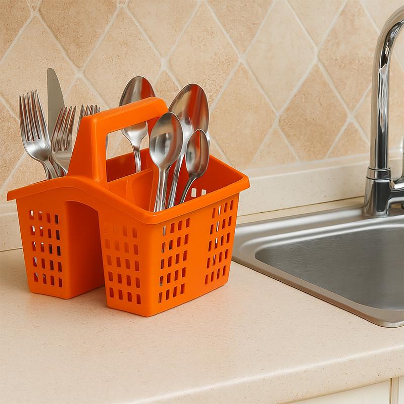 Пластиковий тримач для столових приладів - це практичний та зручний аксесуар для кухні, який допомагає підтримувати порядок та організувати зберігання. Виріб має два відділення, що дозволяє розділяти ложки, виделки, ножі або інше кухонне приладдя. Завдяки компактним розмірам, тримач не займає багато місця і легко розміщується на кухонній поверхні або в шафі. Продумана форма із зручною ручкою робить його мобільним - Утримувач можна легко переносити з місця на місце, використовувати як для зберігання приладів, так і для їх сушіння після миття. Перфоровані стінки забезпечують вентиляцію та швидкий відтік води, що запобігає появі неприємного запаху та сприяє гігієнічному використанню. Виготовлений із міцного та легкого пластику, стійкого до вологи та впливу миючих засобів. Характеристики: - Матеріал: пластик - Призначення: для зберігання та сушіння столових приладів - Кількість відділень: 4 - Наявність ручки: є - Особливості: перфоровані стінки для вентиляції та стоку води - Розміри: 16 × 16 × 14,5 см - Вага: 94 г - Країна виробництва: Україна