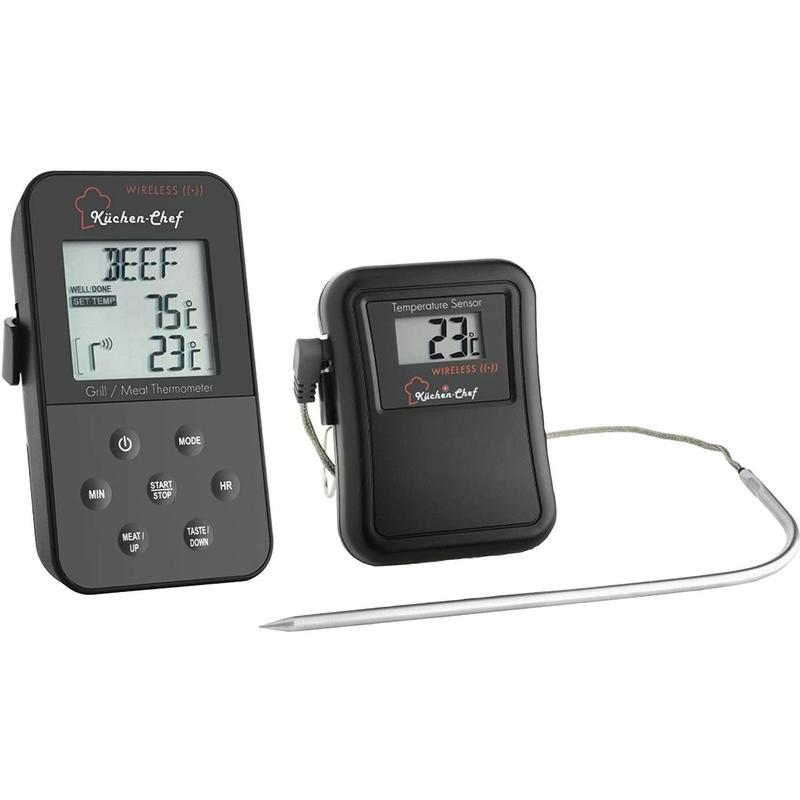 Обсмажування та приготування м'яса на грилі до досконалості — завдяки контролю температури всередині продукту! Готуйте як професіонал зі 100% гарантією успіху. Це пов'язано з тим, що цифровий термометр для смаження на грилі «KÜCHEN-CHEF» надійно інформує вас, коли досягається бажана температура всередині продукту. Це гарантує, що ви завжди матимете ідеальний ступінь готовності — волієте ви м'ясо недосмажене, середнє або добре просмажене. Високоякісний щуп із неіржавкої сталі може залишатися в духовці або грилі впродовж усього процесу приготування. Просто вставте щуп у м'ясо та виведіть термостійкий кабель із датчиком із духовки. Повісьте датчик поруч із духовкою. Сигнал від датчика передається на базовий блок через радіосигнал на відстань до 40 м (на відкритому просторі). «KÜCHEN- CHEF» ідеально підходить навіть для приготування їжі за низьких температур. Цей універсальний пристрій також може бути використаний для інших цілей у приготуванні їжі, наприклад, для контролю температури дитячого харчування, приготування джему або шоколадної маси. ФУНКЦІЇ: - Для оптимального приготування м'яса та птиці способом моніторингу температури всередині продукту - Щуп-датчик з бездротовим передаванням (на відстані до 40 м на відкритому просторі) - Може використовуватися для духовки або гриля, також ідеально підходить для приготування їжі за низьких температур - Попередньо запрограмовані різні види м'яса та ступінь його готовності - Індивідуальні температурні вимоги можуть бути запрограмовані - Сигнал тривоги у разі досягнення цільової температури - Функція таймера та секундоміра - Мембранні кнопки для простоти експлуатації й очищення - Щуп із неіржавкої сталі з ок. 80 см кабелем - З тримачами для кріплення ХАРАКТЕРИСТИКИ: - Діапазон вимірювання температури м'яса: 0...+300 °C - Роздільна здатність: 1 °C - Таймер прямого та зворотного відліку: Максимум 23 години та 59 хвилин - Датчик у комплекті: 303201 - Довжина кабелю: Ок. 80 см, термостійкість до +300 °C - Дальність передавання даних від датчика: 40 м на відкритій місцевості - Частота передавання даних: 433 МГц - Матеріал: Пластик, неіржавка сталь - Колір: Чорний - Спосіб встановлення: Підвішений (тримач) або окремішній - Джерело живлення: Батарейки - Тип батарейок: 2 x 1.5 В АAА (базова станція), 2 x 1.5 В АAА (датчик) - Батарейки в комплекті: Так - Розміри: 10.5 x 6 (6.5) x 2.1 (2.8) см (базова станція), 8.5 x 6.3 x 2.3 см (датчик) - Вага: 0.067 кг (базова станція), 0.06 кг (датчик) КОМПЛЕКТАЦИЯ: - Базова станція - Датчик температури зі щупом і кабелем - Батарейки - Інструкція з експлуатації - Гарантійний талон МІЦНІСТЬ ЯКОСТІ TFA: Продукція від TFA переконує в функціональності та дизайні. QUALITY-PRODUCT by: TFA Dostmann GmbH & Co.KG Germany