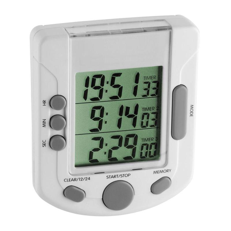 ФУНКЦИИ: - Таймер и секундомер - Со звуковым сигналом - Большие, легко читаемые цифры - 3 таймера - возможна одновременная работа - Максимум. установка времени: 19 часов, 59 минут, 59 секунд - Секундомер - Время - Часы / минуты / секунды - С монтажным магнитом QUALITY-PRODUCT by: TFA Dostmann GmbH & Co.KG Germany