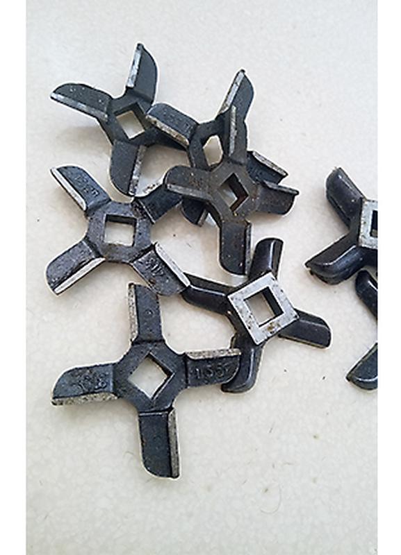 Продам ножі до м'ясорубки, часів зір. Ножі нові в олії — 13 шт. Посадкове місце — квадрат 0.8 на 0.8 см Розмір 4,7 см (за крайніми точками) Решітка на м'ясорубку нова, у олії — 2 шт. - 70 грн/шт Діаметр решітки — 5,3 см Діаметр отворів — 5 мм Товщина решітки — 5 мм