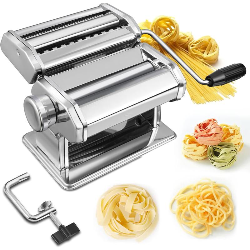 Ручна локшинорізка для розкочування тіста - чудовий вибір для тих, хто захоплений домашньою кулінарією і цінує свіжість приготовленої локшини. Переваги: - Свіжа домашня локшина будь-якої миті; - Розкочує тісто; - Дві форми локшини; - Зручність та простота використання; - Рівномірна товщина тіста; - Професійна якість виконання Опис: Ручна тісторозкатка - це зручний та багатофункціональний інструмент, розроблений для тих, хто воліє готувати свіжу домашню локшину. Вона забезпечує простий і ефективний спосіб розкочування тіста в тонкі та однорідні шари, які можуть бути використані для приготування різних видів локшини, включаючи спагетті, локшину феттучині, локшину в рулонах та багато іншого. Локшинорізка ручна складається з кількох ключових компонентів. В першу чергу це основа або рама, що забезпечує стабільність і стійкість інструменту. На цю основу встановлюється ручка, за допомогою якої користувач легко керує процесом розкочування тесту. Ручка в тісторозкочуванні знімна, що робить зберігання та транспортування інструменту зручними. Характеристики: - Тип товару: тісторозкаточна машина / локшинорізка; - Матеріал: високоякісна нержавіюча сталь; - Тип: механічна, настільна; - Блок валів: знімний; - Ширина локшини: 1,5 мм; 5 мм; - Матеріал ніжок: гума; - Товщина пласта, що розкочується: 0,5 - 4 мм (9 положень); - Розміри локшинорізки: 21х21х14,5 см; - Ширина валу тісторозкатки: 15 см; - Колір: сірий; - Вага: 2,5 кг Комплектація: - Локшинорізка для розкочування тіста; - Змінна ручка - Затискач; - Вал для тонкого розкочування тіста; - Два нарізні механізми для тонкої та широкої локшини; - Упаковка