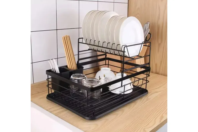 Тип товару: Стелаж кухонний Матеріал: метал+пластик Стиль: сучасний Особливості: 2 яруси, телескопічний, планування зони Країна виробник: Китай Колір: Чорний Комплектація Стелаж кухонний сушарка для посуду Заводська упаковка