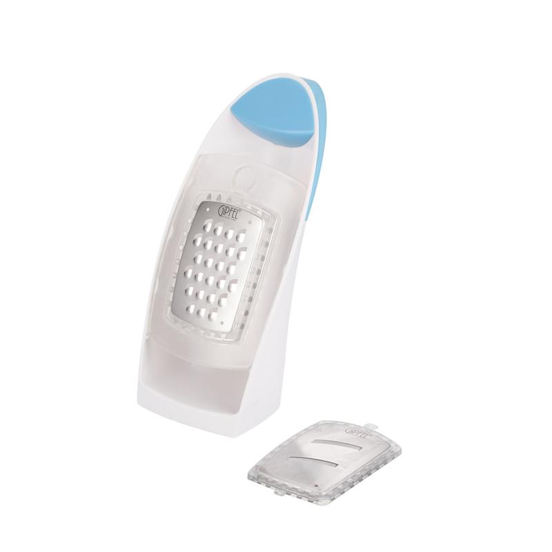 Терка зі знімними насадками Gipfel Despegue GP-9779 Терка Gipfel Despegue GP-9779 значно підвищить рівень комфорту під час готування, оскільки виконана з міцної нержавіючої сталі та в компактних розмірах. Кожне лезо безпечно вставляється у корпус. Ви можете використовувати леза для дрібного та великого натирання або для нарізування скибочками. Ручка забезпечує міцне та безпечне утримання, а тримач продуктів захистить руки під час роботи. Підходить для посудомийної машини. Характеристики: - Тип: терка зі знімними насадками - Матеріал лез: нержавіюча сталь - Матеріал корпусу: пластик - Розміри: 11,5х10х23 см - Кількість насадок: 2 - Підходить для миття в посудомийній машині - Серія: Despegue - Колір: різні кольори - Виробник: Gipfel