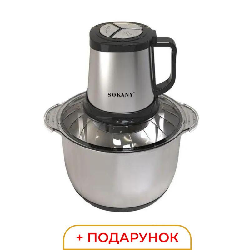 Подрібнювач Sokany - це потужний та універсальний кухонний чоппер, призначений для швидкого та ефективного подрібнення різних продуктів. З його допомогою ви зможете легко подрібнити м'ясо, овочі, фрукти, горіхи, трави та інші інгредієнти. Завдяки потужності 800 Вт та чотирьом лезам, подрібнювач забезпечує швидку та рівномірну обробку продуктів, зберігаючи їх текстуру та поживні властивості. Основні характеристики подрібнювача розмір 27×22×29 см; потужність 800 Вт; об'єм чаші 5 літрів; кількість лез 4 штуки; матеріал лез – нержавіюча сталь; матеріал чаші - нержавіюча сталь. Чоппер оснащений трьома режимами швидкості, які дозволяють вибрати оптимальний режим в залежності від типу продуктів і необхідної текстури. Об'єм чаші дозволяє обробляти великі порції продуктів за один раз, що особливо зручно для приготування для сім'ї або на вечірках. Крім того, м'ясорубка із чотирма лезами дозволяє подрібнити м'ясо та створити фарш потрібної текстури. Ви зможете приготувати власні бургери, ковбасу, м'ясні фарші та інші страви. М'ясорубка чоппер Sokany - це надійний та зручний інструмент, який допоможе вам заощадити час та зусилля при приготуванні їжі. Він стане незамінним помічником на вашій кухні, дозволяючи вам швидко та легко приготувати різноманітні страви з мінімальними зусиллями.