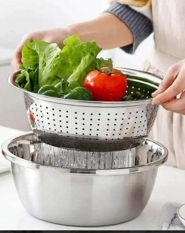 Багатофункціональний кухонний набір з нержавіючої сталі 3 в 1 metal basket cutter миска ду...