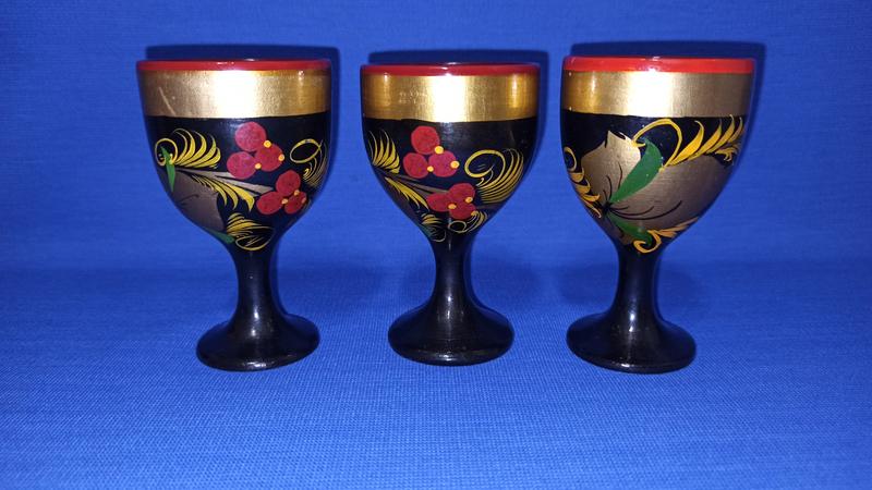 Хохлома винтаж деревянные рюмки фужеры расписные 3 шт