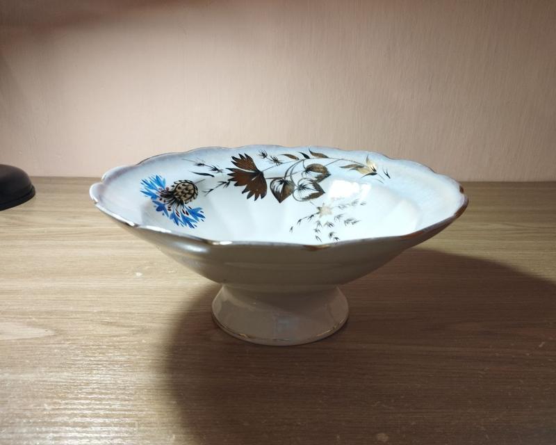 Посуд часів срср, якісний матеріал. Можна використовувати для цукерок, фруктів. Діаметр верху 23 см., висота 9,5 см.
