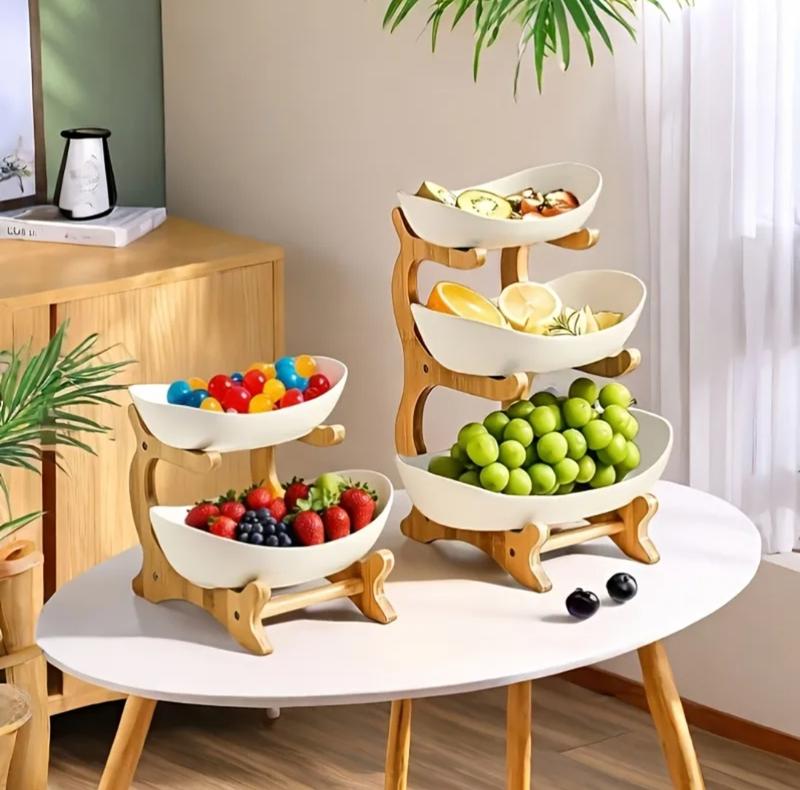 Представляємо унікальну підставку для фруктів/цукерок, яка стане вишуканим доповненням до Вашого інтер'єру. Це не просто виріб, а справжній витвір мистецтва, що поєднує в собі вишуканий дизайн та функціональність. Ваза складається з одного, двох або трьох рівнів, кожен з яких забезпечує зручність та естетичну насолоду. Підставка має розміри 35 см заввишки, 28 см завглибшки і 15 см завширшки, що забезпечує стійкість і надійність конструкції. Виготовлено вазу з високоякісного матеріалу, який забезпечує довговічність та довгострокове збереження. Підставка із дерева, чаші з міцного пластику. Білий колір виробу виглядає дуже стильно, підкреслюючи красу та яскравість розміщених продуктів. Ця триярусна фруктовниця ідеально підходить для застосування в домашньому інтер'єрі, офісних приміщеннях або як елемент декору на вечірках та заходах. Разом з тим, вона стане найкращим подарунком для рідних і близьких! Характеристики фруктівниці: *використання - для фруктів, цукерок, та інших продуктів. *Розмір у зібраному вигляді: 35 см х 28 см х 15 см Довжина чаш: 28 см, 26,5 см, 25 Висота чаш: 6,5 см, 6 см, 5,5 см Колір: білий Ціна: 1 ярусна - 450 грн., 2-ярусна 720 грн, 3-ярусна 890 грн. Перед замовленням уточнюйте, будь ласка, наявність товару!