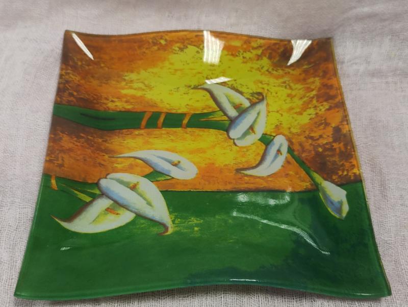 Фруктовница - блюдо из стекла 19 х 19 см в красивом состоянии
