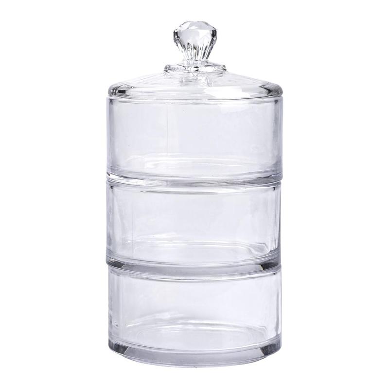 Цукерниця трирівнева з кришкою скляна 20х10 см прозора елегантна для цукерок і святкового...