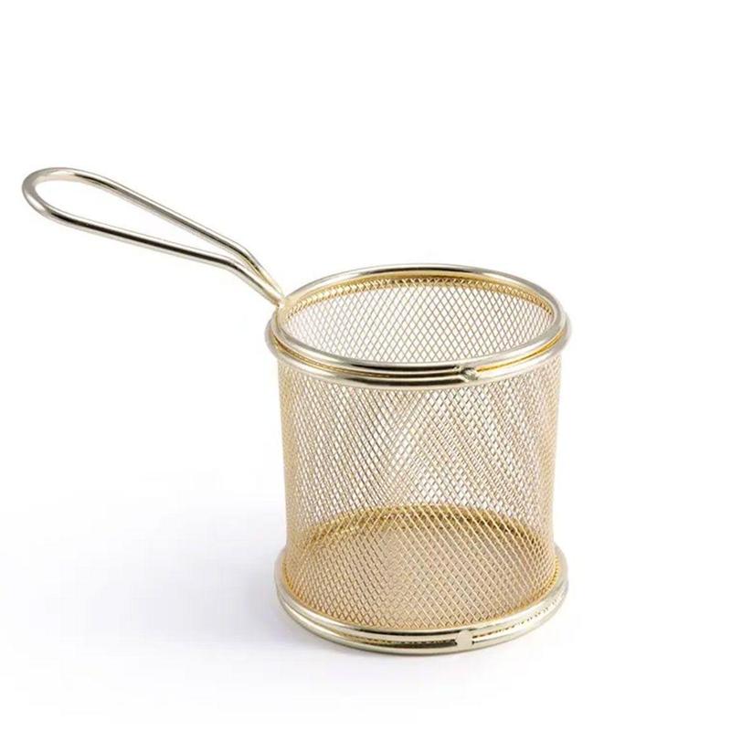 Кошик сервірувальний для фрі та снеків 9×9×9 см з гальванічним покриттям золотий