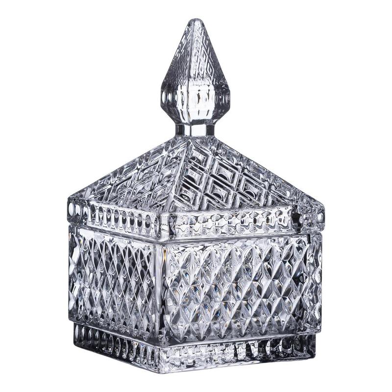 Скляна цукерниця з кришкою із скла у східному стилі -- це вишуканий аксесуар, який гармонійно поєднує елегантність і функціональність. Її дизайн натхненний східними мотивами, що додає витонченості та екзотичного шарму. Прозоре скло забезпечує вишуканий блиск і підкреслює красу солодощів або інших частувань, які в ній зберігаються. Основні характеристики: Матеріал: скло; Довжина: 8 см; Ширина: 8.5 см; Висота: 15 см. Завдяки висоті 15 см, ця цукерниця чудово підходить для подачі цукерок, печива чи інших дрібних ласощів. Кришка забезпечує збереження свіжості вмісту, а міцний матеріал гарантує довговічність. Така цукерниця стане окрасою будь-якого святкового столу або інтер'єру, а також чудовим подарунком для цінителів стильного посуду.