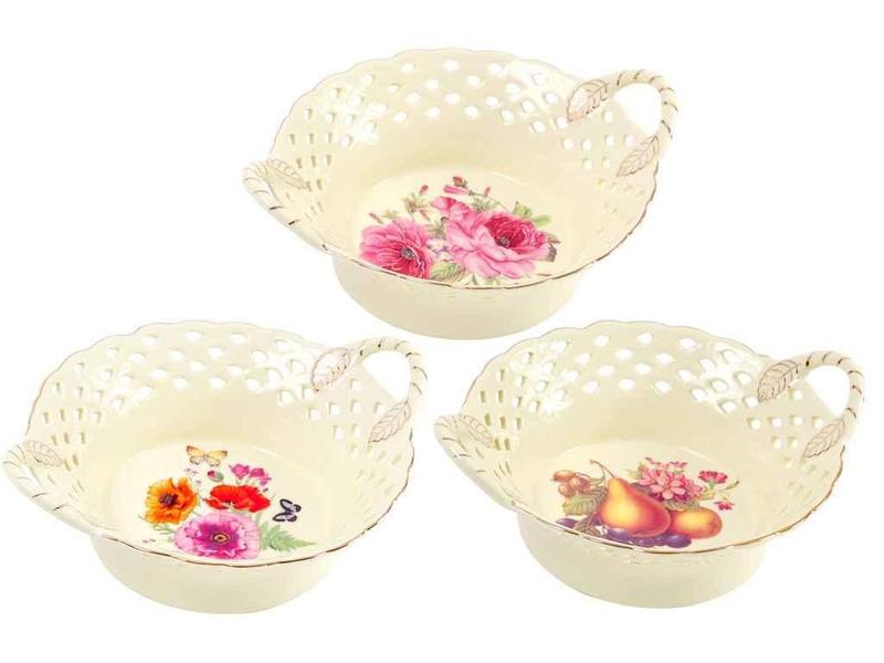 Матеріал: Порцеляна Колір: Кремовий Розміри: 24см Упаковка: подарункова коробка 1 1 18 Кількість дизайнів: 3 Категория: Фруктовниці, цукерниці