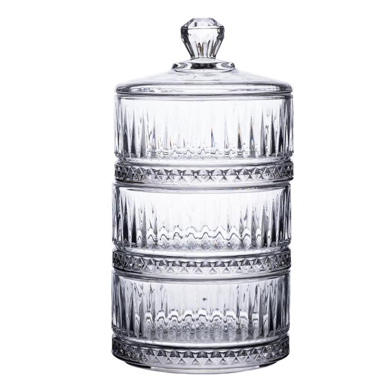 Трирівнева цукерниця - це вишукана деталь для вашого інтер'єру, яка поєднує практичність та естетику. Виготовлена з товстого скла, вона має сучасний і водночас універсальний вигляд, який гармонійно доповнить будь-який стиль кухні чи вітальні. Завдяки прозорості матеріалу, наповнення цукерниці легко проглядається, що робить її ще більш привабливою для гостей. Основні характеристики: Матеріал: скло; Діаметр: 10 см; Висота: 20 см. Особливістю цієї моделі є три рівні, що дають змогу зручно сортувати солодощі за видами, кольорами або смаками. Це робить її незамінною для святкового столу або просто як стильний аксесуар для щоденного користування. Кришка захищає вміст від пилу, зберігаючи свіжість продуктів. Розміри виробу - висота 20 см і діаметр 10 см - роблять його компактним, але водночас досить містким для розміщення улюблених ласощів. Така цукерниця стане чудовим подарунком для близьких або приємним доповненням до власного побуту. Її міцність і стійкість гарантують тривале використання, а простота в догляді забезпечує комфорт у щоденному користуванні.