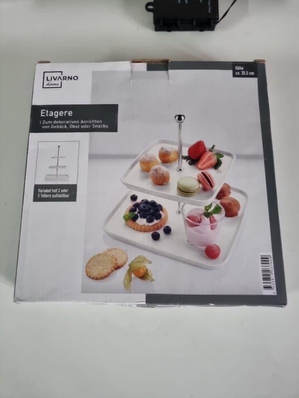 Вишукана багатоярусна таця для сервірування десертів, фруктів та закусок. Виготовлена з якісної порцеляни, має міцну металеву стійку. ​Характеристики: ​Матеріал: біла порцеляна (кераміка). ​Висота: 35.5 см. ​Конструкція: трансформер, можна використовувати на 2 або 3 яруси. ​Стан: новий, у фірмовій упаковці( але упаковка пошкоджена, тому вказую, що стан ідеальний)