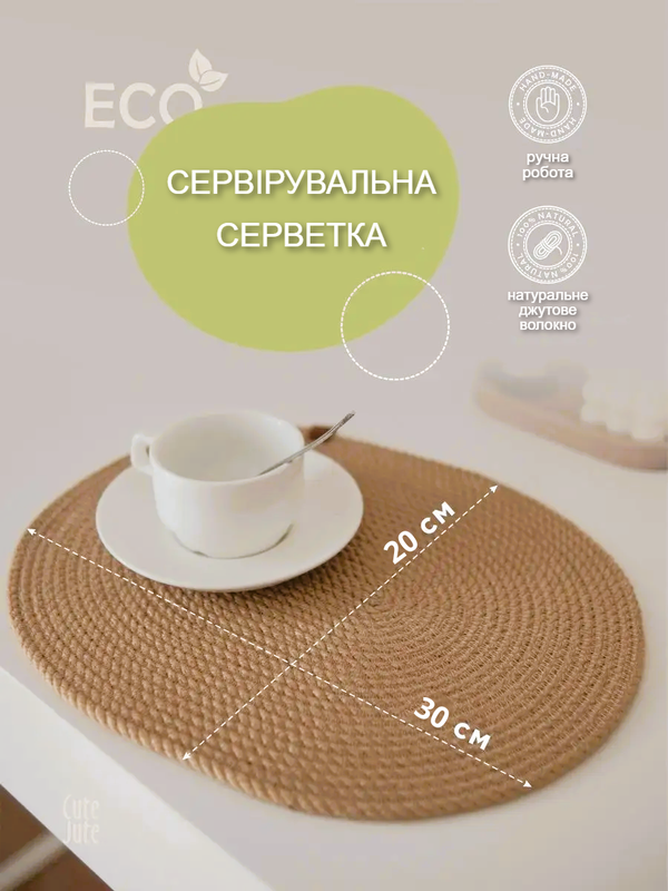 Підтарільник плейсмат сервірувальна серветка з джуту овальної форми