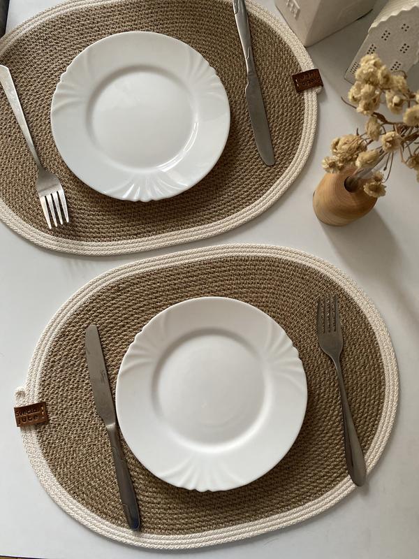 Овальний підтарільник із джута з бавовняним кантом, підтарільник для сервірування столу,