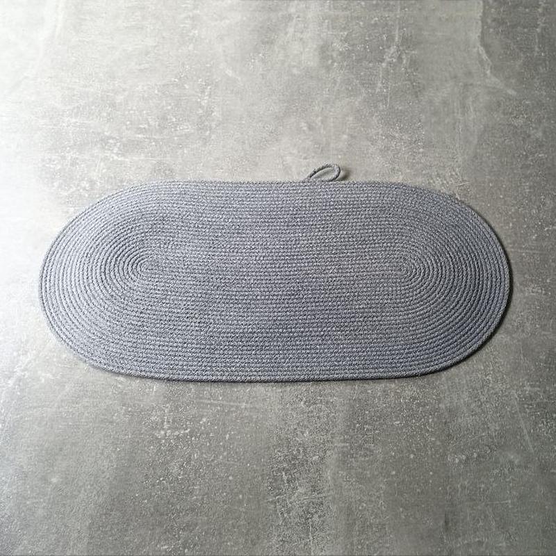Універсальний овальний сірий килимок Nebbia Ovale ручної роботи з щільного бавовняного шнура, 55×25 см. Зручно для робочого столу (клавіатура/обід за столом / для роботи і т.д.), однаково добре пасує й для сервірування столу, як підставка під тарілки/чайник, для тумбочки в спальні чи під вазон. Можливе виготовлення за індивідуальними розмірами та кольорами. Що зручно: - захищає поверхню від подряпин і слідів; - не “їздить” по столу завдяки щільному плетенню; - легко пилососиться та переться вручну; - робимо потрібний розмір і колір під ваш інтер’єр. Догляд: делікатне ручне прання до 30 °C, без відбілювачів; Характеристики - Форма: овальна - Розмір: 55×25 см - Колір: сірий - Матеріал: щільний бавовняний шнур - Виробництво: Charivna Craft, ручна робота, Україна Індивідуальне виготовлення: так - будь-які розміри/кольори за узгодженням.