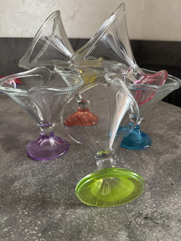 Новые, с разноцветными ножками, без коробки Вмісткі, глибокі, заміри на фото Италия Набор из 6 чашек Magnolya в цветном стекле, подходит для любого типа десерта, а также для аперитива. декора, можно мыть вручную и в посудомоечной машине.