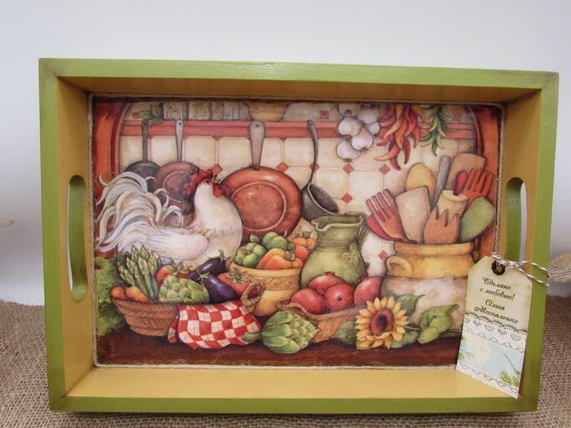 Поднос – это необходимая и очень часто используемая на кухне вещь! Каждая хозяйка будет рада иметь у себя такой красивый и функциональный аксессуар. Поднос слегка состарен. Благодаря качественной заготовке и многослойной лакировке поднос не требует особого ухода ( основное правило- не замачивать в воде ).В работе использовались материалы безвредные для человека.