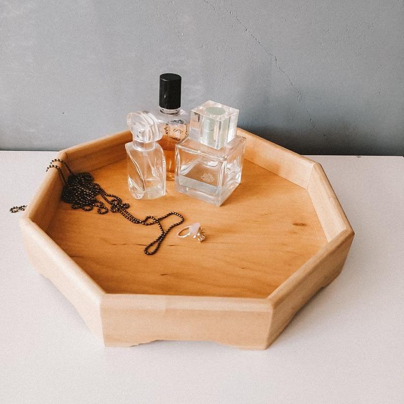Піднос діаметром 28 см з натурального дерева вільха. Стильні дерев'яні підноси для особливих моментів у житті. Купити такий піднос означає привнести яскраву нотку в свій будинок. Підходить під будь-який інтер'єр і стане доповненням до будь-якої кухні. Зручні підноси з бортиками для приємних сніданків і романтичних вечерь. У нашій майстерні можна замовити тацю стандартного розміру. Також, можливе виготовлення таці під розмір і форму, необхідну замовнику. Діаметр - 28 см Матеріал - натуральне дерево вільха