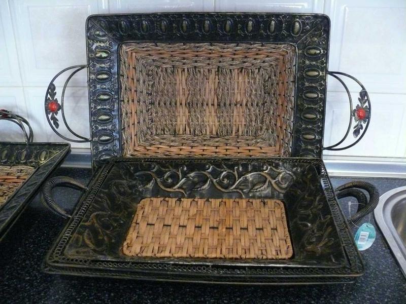 Металлический поднос с плетением из лозы, есть в двух размерах, размеры 30х40 см., глубина 5 см. и 33х43 см., глубина 7 см. Этот незаменимый аксессуар выглядит как и подобает предмету отмеченному лоском восточной роскоши. Красивый цвет служит выигрышным фоном для изящного орнамента чеканки. Качество подноса вас порадует, равно как и ощутимая степень комфорта в использовании. В наличии 30х40 см. - 2 штуки , глубина 5 см. и 33х43 см., глубина 7 см. - 2 штуки. При покупке всех четырёх штук цена за все 1 тысяча гривен (скидка составляет 200 гривен) Область применения обширна, как для подачи закусок , может быть использован также как блюдо для фруктов либо для хлеба. Оригинальное дополнение к Вашему кухонному интерьеру, интерьеру дачи либо загородного дома! Или может служить как украшение интерьера, а так же как беспроигрышный вариант для подарка. Смотрите другие мои объявления. Дополнительные фото по запросу. Перед заказом уточняйте наличие. Читайте раздел Обо мне. Доставка Укрпочта.